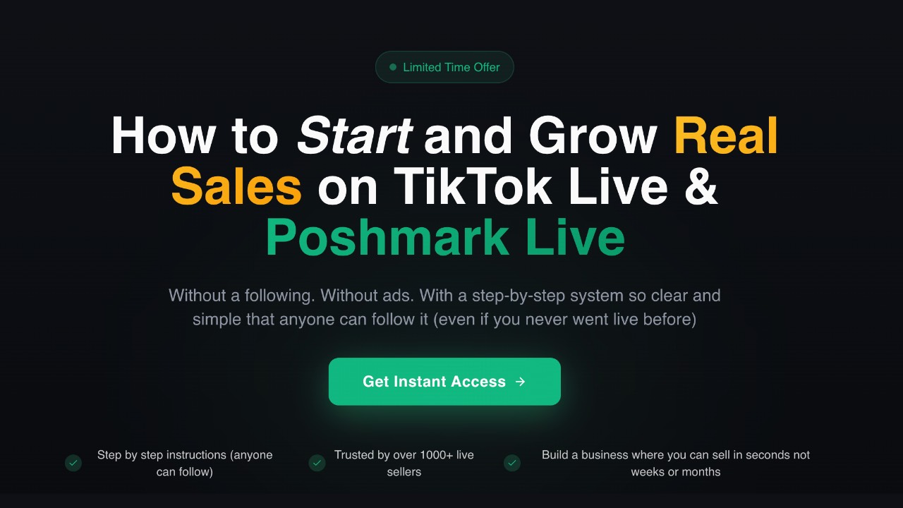 Get immediate access to a step-by-step, beginner-friendly system designed to help you launch your first Tiktok & Poshmark Live shows and start generating real sales โ even if youโve never gone live before.